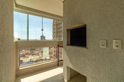 A sacada é fechada e tem um bom espaço, com uma mesa alta e churrasqueira com exaustor para comer um churrasco contemplando a bonita vista da Vila Rodrigues.