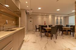 O condomínio é baixo, sendo que o prédio dispõe de 02 salões de festas junto ao hall de entrada. O edifício tem sistema de segurança automatizado com câmeras no hall, nos corredores de todos os andares e garagens.