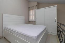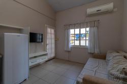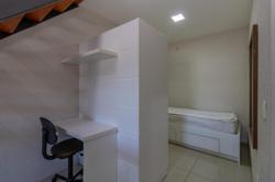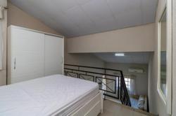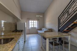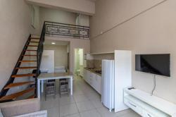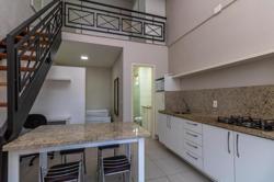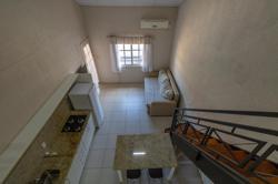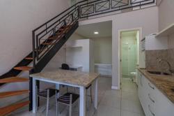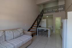 Apartamento com mezanino, atende até 3 pessoas e possui 1 cama de casal e 1 cama de solteiro.