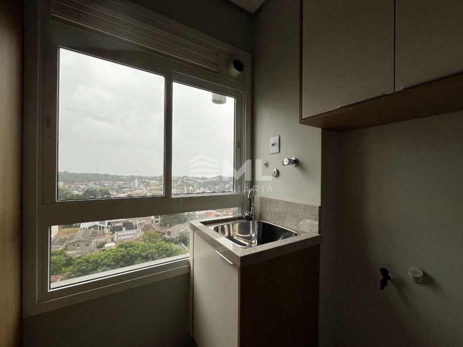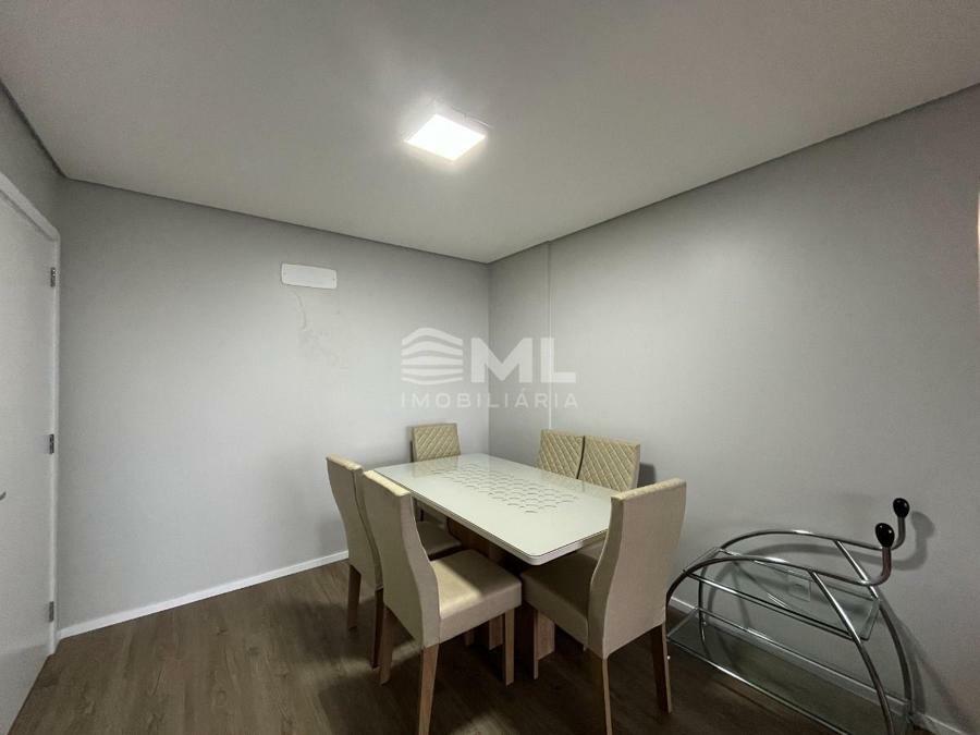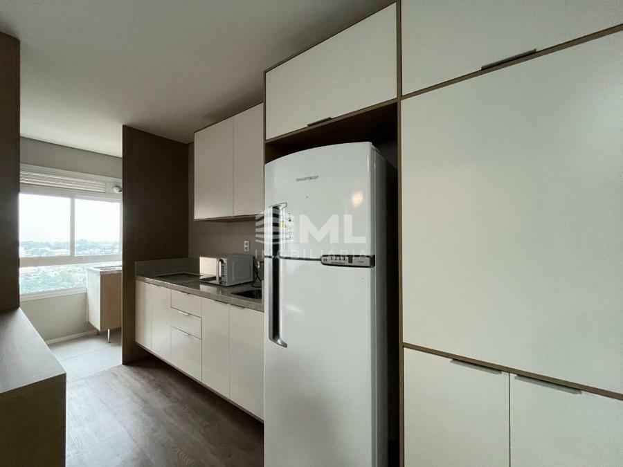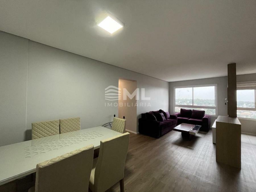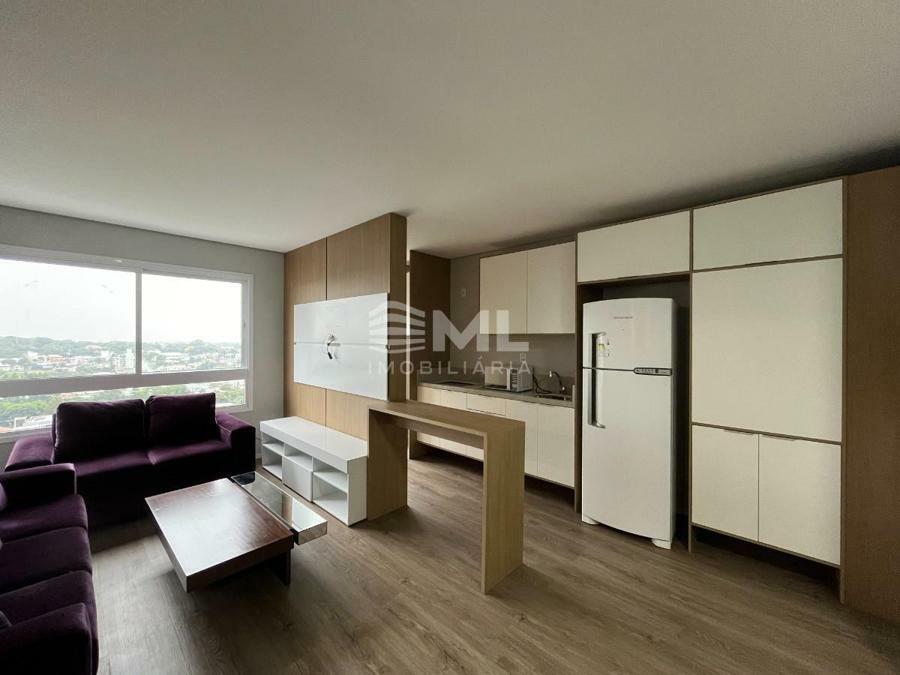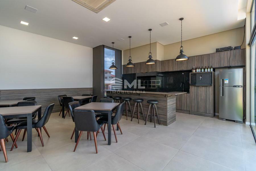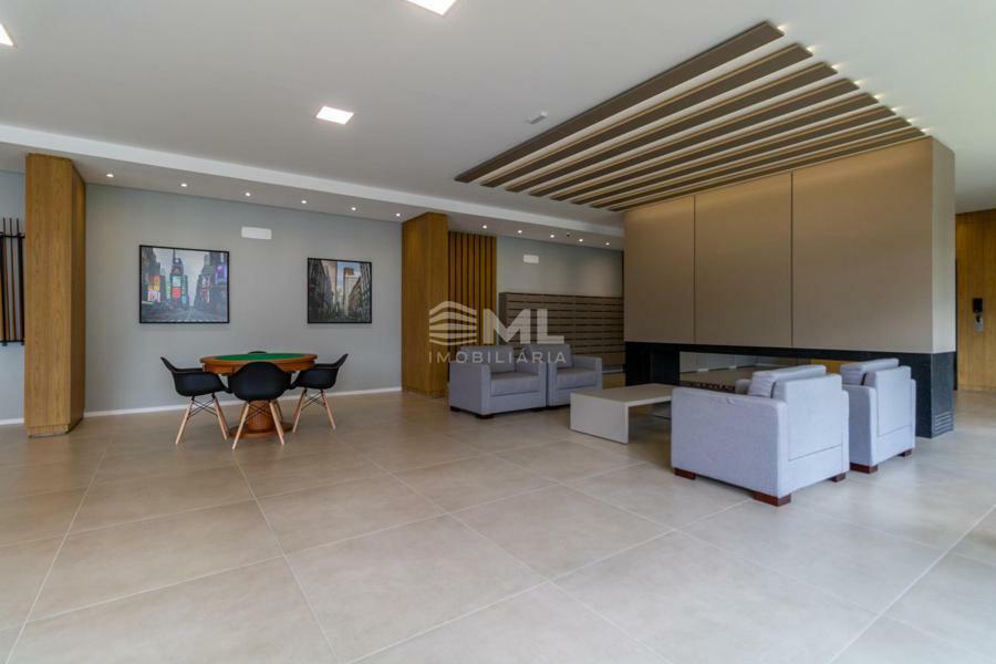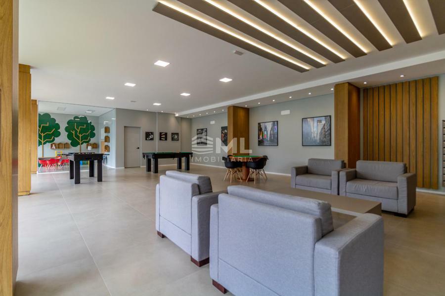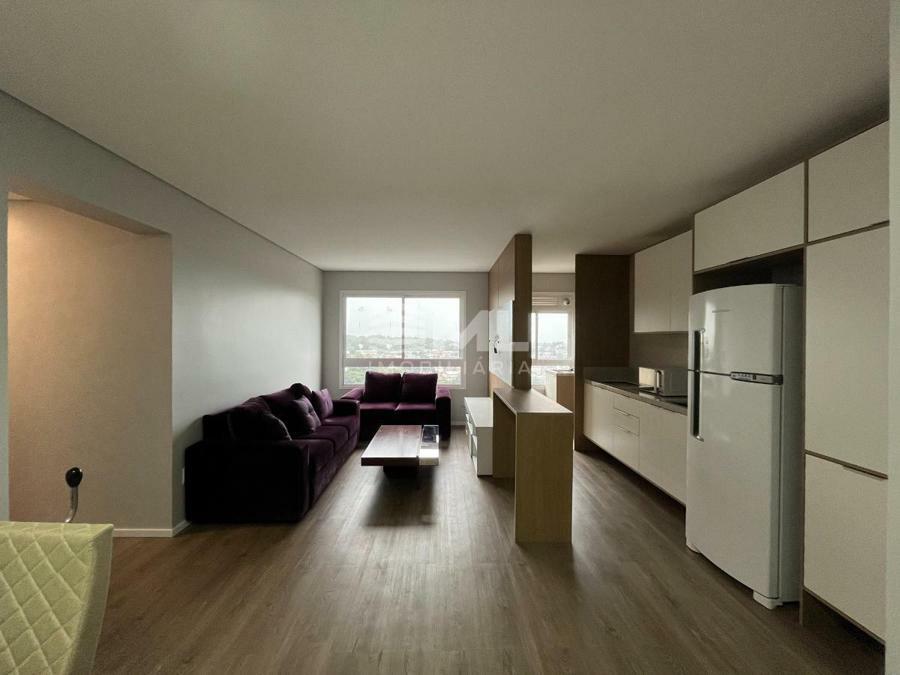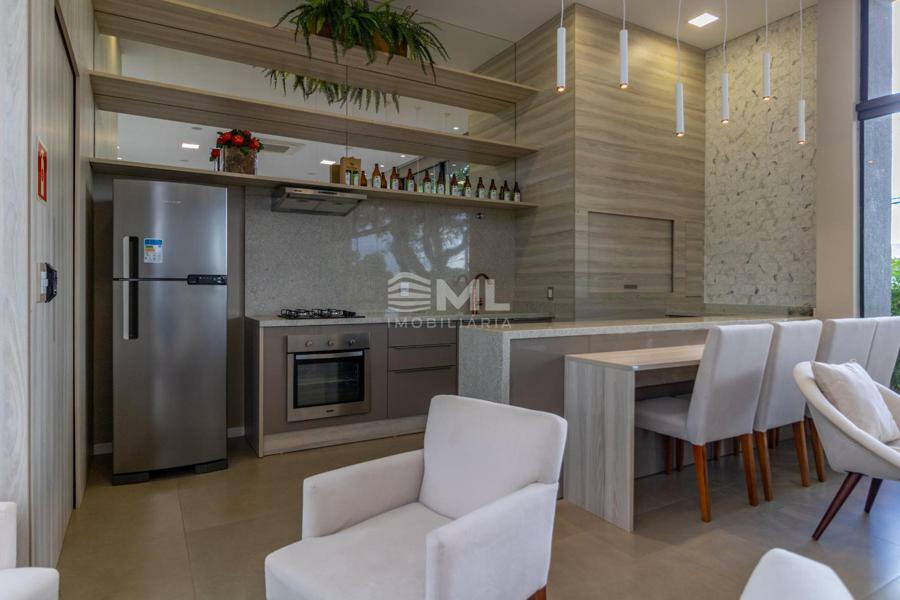 Sala 02 ambientes com sacada integrada, cozinha, área de serviço e banheiro social.