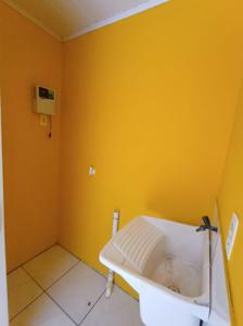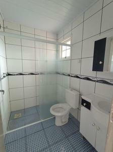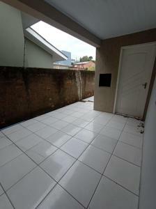 A casa também dispõe de garagem, banheiro social, pátio na frente e nos fundos.