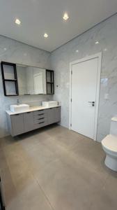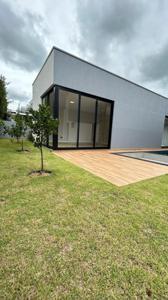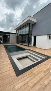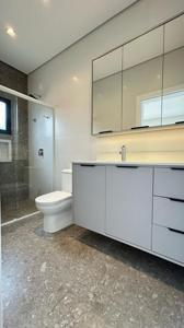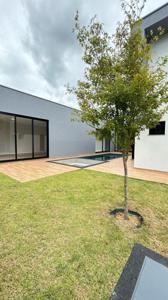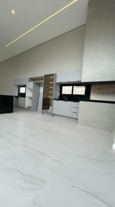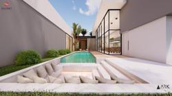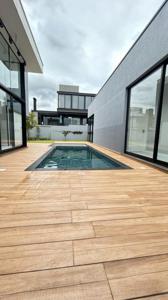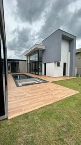 Esta residência possui um design único, com volumetrias imponentes aliadas a elementos sofisticados e ricos em detalhes. A área de lazer conta com fire place e uma ampla piscina com borda infinita. Grandes aberturas que proporcionam luminosidade, ventilação natural e visualização completa da área externa. Pé direito duplo em toda a extensão do living que oferece muita amplitude. Composta por 03 suítes sendo 01 master. Na área social, lavabo, amplo living integrado para diversos ambientes – cozinha, sala de jantar, sala de estar, sala de TV, espaço gourmet com churrasqueira, piscina com borda infinita, deck, garagem coberta para 02 carros e jardins. Aberturas externas em alumínio, aberturas internas laqueadas, pintura com textura grafiato, porcelanato área social, laminado área íntima, paisagismo, piscina em blocos de concreto com revestimento vinil.