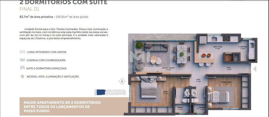 Edifício L`Essence no Bairro Rodrigues, próximo a Imed, e Colégio Tiradentes, com 4 apartamentos por andar, perto de tudo, com baixo custo condominial, amplitude e iluminação!