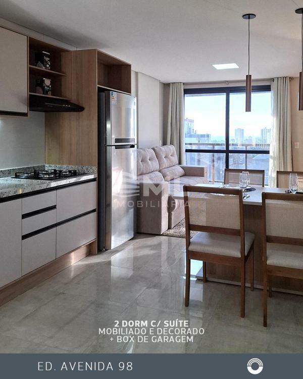 Conheça este apartamento no Edifício Avenida 98, de frente, com sacada e churrasqueira, com 2 dormitórios sendo uma suíte, com box de garagem, em frente a Galeria Central, próximo a mercados, farmácias, bancos, praças, escolas tudo o que você precisa para facilitar seu dia á dia.