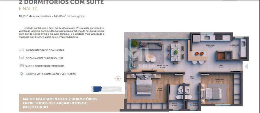 Edifício L`Essence no Bairro Rodrigues, próximo a Imed, e Colégio Tiradentes, com 4 apartamentos por andar, perto de tudo, com baixo custo condominial, amplitude e iluminação!