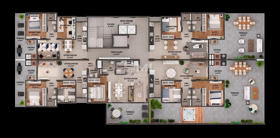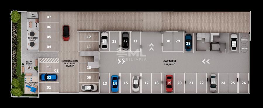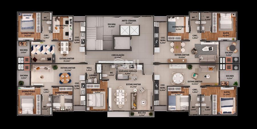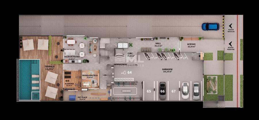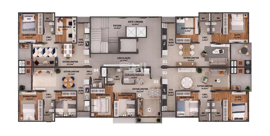 Empreendimento de 13 pavimentos, com 5 apartamentos por andar.
