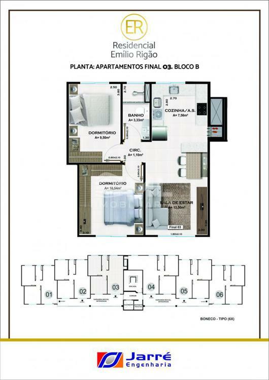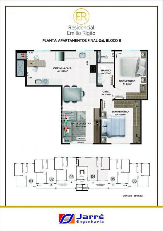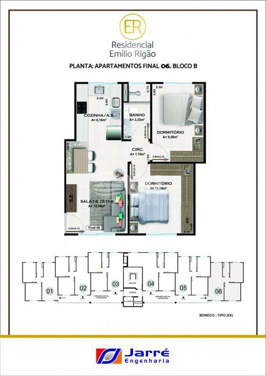 O apartamento ideal para você e sua família em Passo Fundo Em ótima localização, o empreendimento está apenas a 01 quadra da Av. Brasil, próximo ao Bourbon Shopping, Havan, farmácias, escolas e padarias. Com duas torres, conta com apartamentos modernos, seguros e com a qualidade da Jarré Empreendimentos 02 dormitórios Sala cozinha/área de serviço banheiro 01 box de estacionamento Churrasqueira (consulte disponibilidade) Varanda social integrada ao corredor de passagem Medição de água, luz e gás individual Ótima posição solar Excelente iluminação e ventilação Esperas para ar condicionado O empreendimento ainda conta com elevador, bicicletário com banheiro, jardim de acesso, 02 salões de festas com churrasqueira e banheiro. Portão e controle de acesso eletrônico, depósitos privativos, 01 loja comercial, playground e pet place.