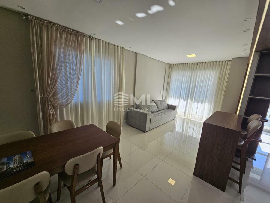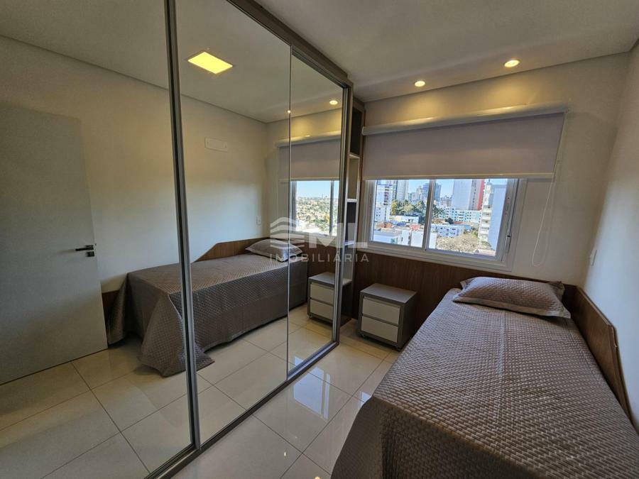 Lugar alto, com vista e posição solar privilegiados, possui sacada com churrasqueira, salão de festas decorado e garagem com vaga dupla.
