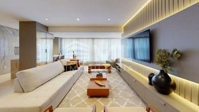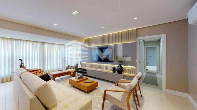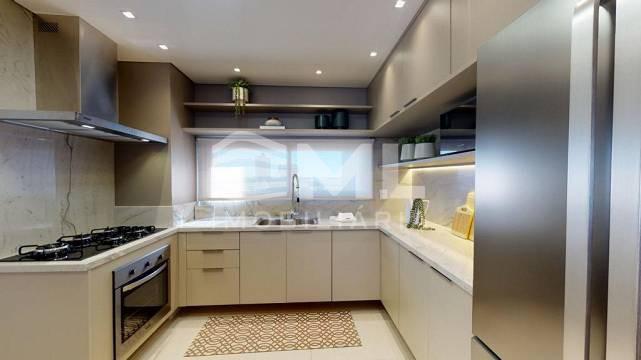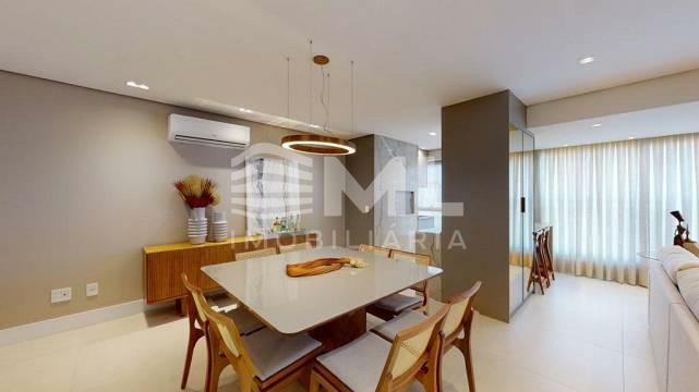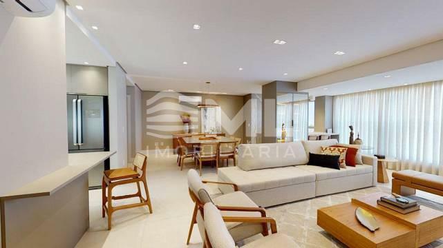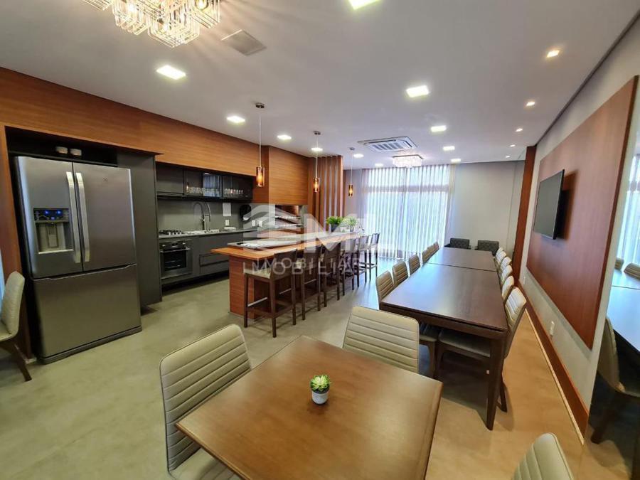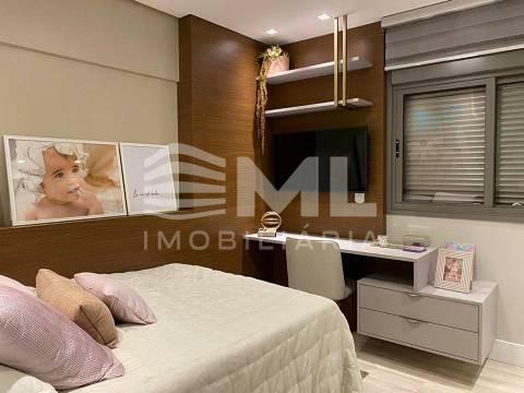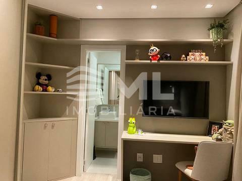 com 3 suítes, sala dois ambientes, cozinha integrada, sacada integrada com churrasqueira, com 2 box de garagem.