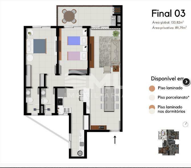 Amplo Apartamento de 3 dormitórios, com 2 suítes, Sala 2 Ambientes, Sacada com Churrasqueira, Cozinha Fechada, Lavanderia Separada, com 2 Box de Garagem.