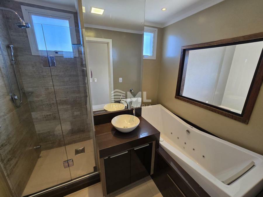 Belíssimo apartamento, andar alto proporcionando uma vista privilegiada, com sacada integrada, semi-mobiliado, amplo , com 3 dormitórios, sendo 2 suíte, a suíte master com closet e banheira de hidromassagem, o terceiro quarto sendo um escritório mobiliado, cozinha integrada com a sala, living 2 ambientes, com 2 box de garagem.