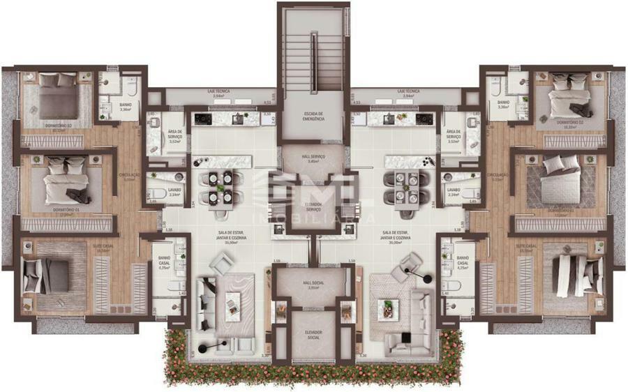 Com somente dois apartamentos por andar, 2 elevadores, 3 dormitórios, sendo 1 suíte, lavabo, Área de Serviço separada, Cozinha Americana com Churrasqueira, Sala dois ambientes e duas vagas de Garagem.