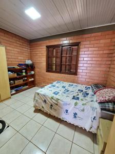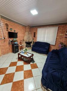 Linda Casa em Alvenaria, 03 Dormitórios, Sala com Lareira, Cozinha, Banheiro Social, Sacada com Churrasqueira e Anexo para Depósito.