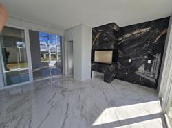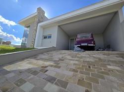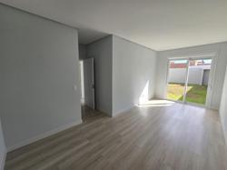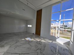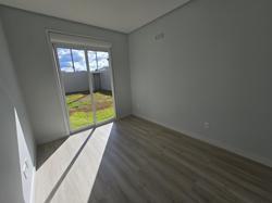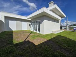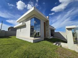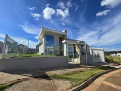 A casa possui três dormitórios, sendo um deles uma suíte, cozinha com conceito americano, integrada a sala de estar e de jantar, banheiro Social, Área de Serviço, um espaço Gourmet e 02 Vagas de Garagem.