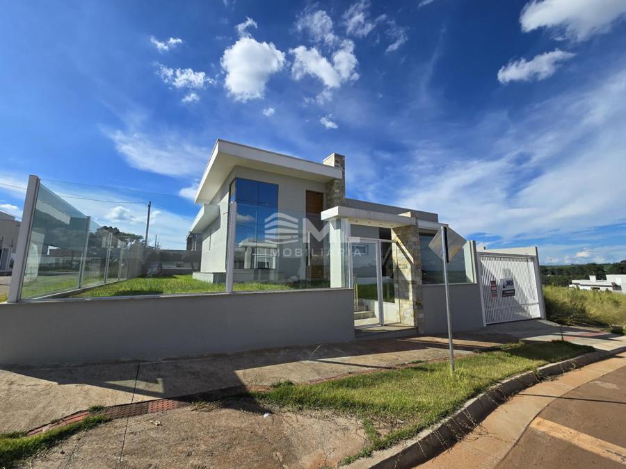 A casa possui três dormitórios, sendo um deles uma suíte, cozinha com conceito americano, integrada a sala de estar e de jantar, banheiro Social, Área de Serviço, um espaço Gourmet e 02 Vagas de Garagem.
