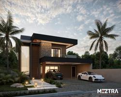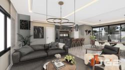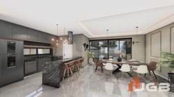 Com ambientes integrados e planta aberta, a residência valoriza a luz natural e a fluidez espacial.