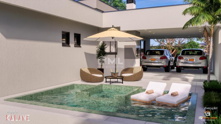 Varanda Gourmet com Churrasqueira, Pórtico Frontal de Vidro, Calçadas, Muros, Grama, ( Piscina Opcional, não inclusa no valor)