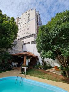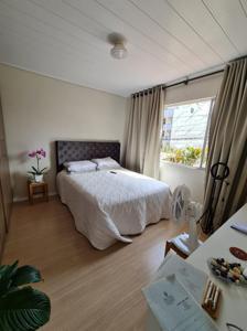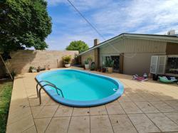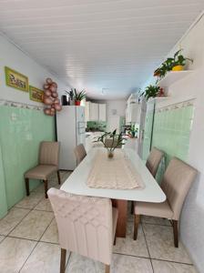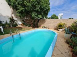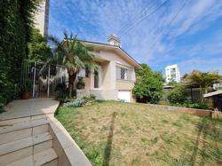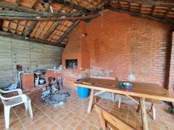 Terreno medindo 378m² com uma casa de alvenaria medindo 120m² de área privativa, tendo garagem para dois carros, 4 dormitórios, sala de estar, 2 banheiros, cozinha, lavanderia, quiosque, piscina, churrasqueira e jardim.