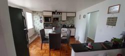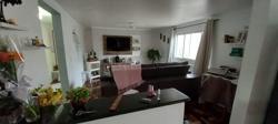 Pavimento inferior garagem com churrasqueira, espaço para 3 carros, cozinha, 1 dormitório, banheiro, sala.