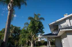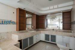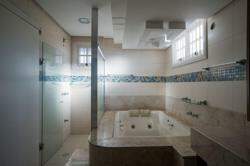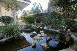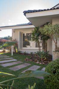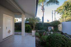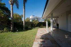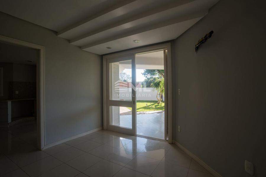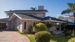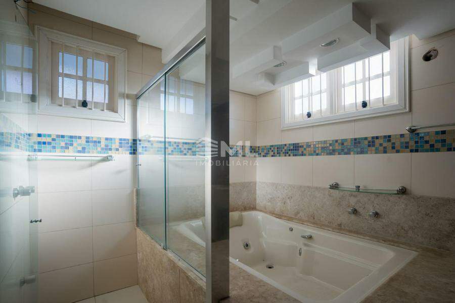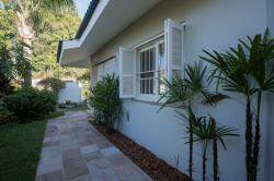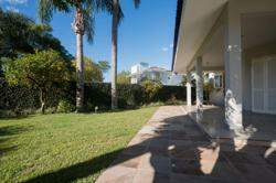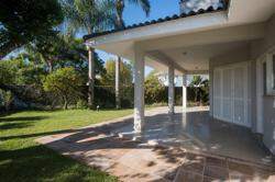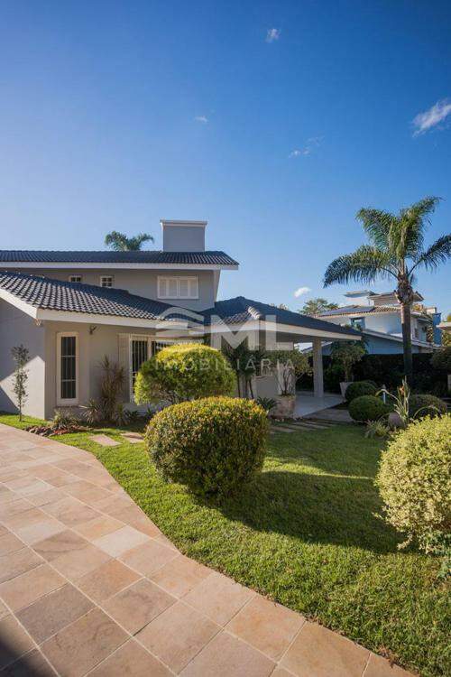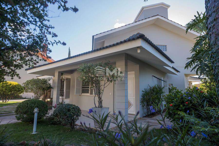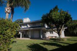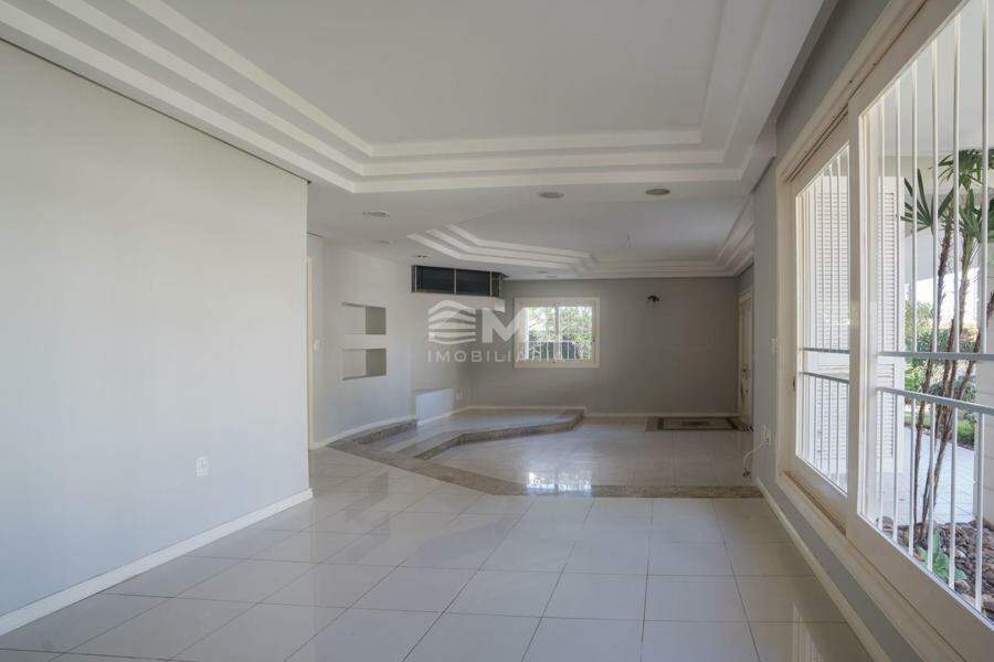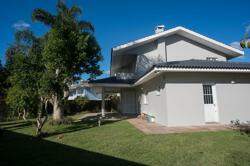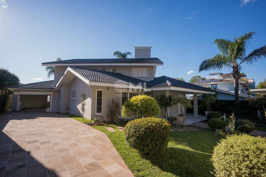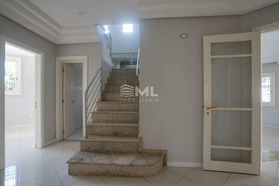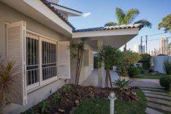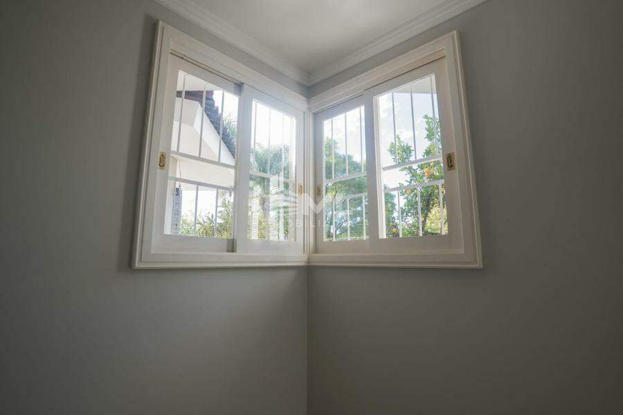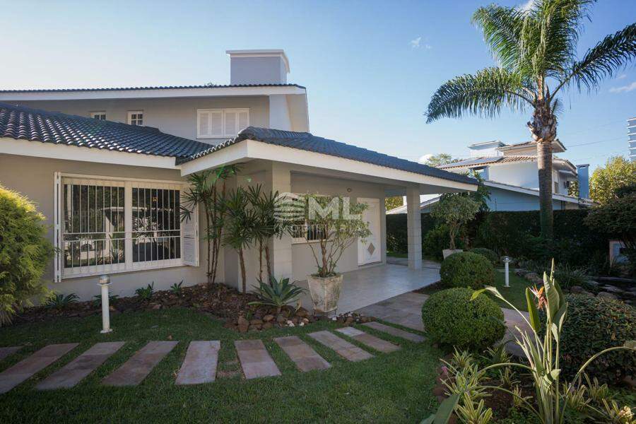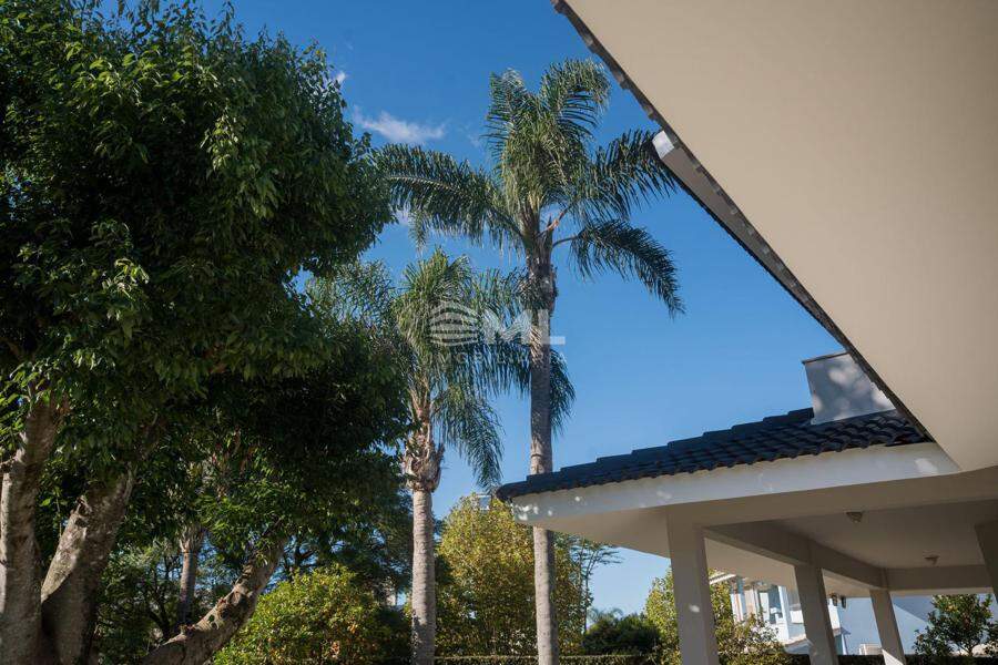 A área externa é um dos grandes destaques da residência, composta por jardins arborizados que emolduram o terreno e proporcionam uma atmosfera de tranquilidade e contato com a natureza. Um lago ornamental com cascata confere charme e sofisticação ao paisagismo, criando um ambiente ideal para relaxamento. O espaço ainda conta com amplo potencial para a instalação de piscina e áreas de lazer complementares, valorizando ainda mais o uso do espaço ao ar livre.
