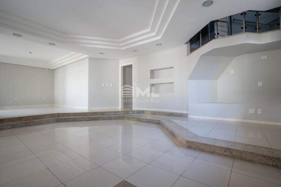 No pavimento térreo, os ambientes sociais se destacam pela amplitude, integração e fluidez dos espaços. Logo na entrada principal, o layout se abre para duas salas integradas estar e jantar que compõem uma área social acolhedora e ideal para recepção. A circulação central organiza o acesso aos demais ambientes do andar, como o escritório, lavabo, escada e a ampla cozinha, conectada a um generoso salão de festas com espaço gourmet perfeito para momentos de confraternização com familiares e amigos.