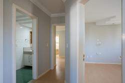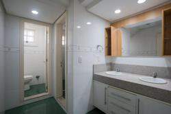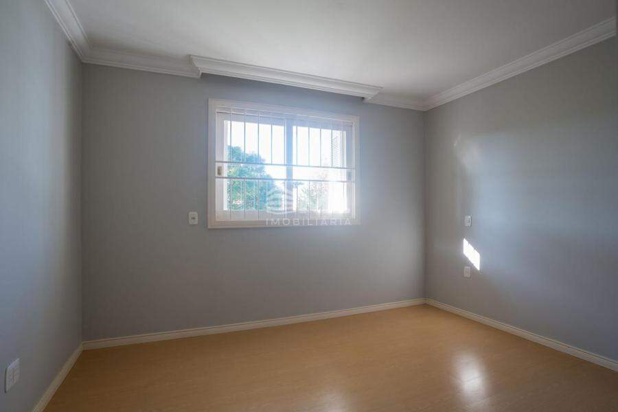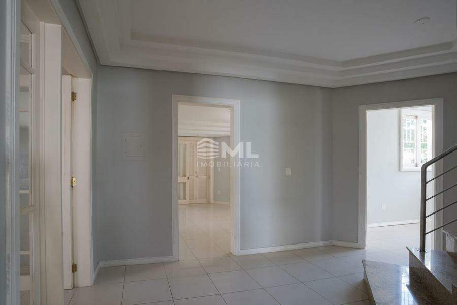 No pavimento superior, a planta é distribuída de forma funcional e privativa. Um hall íntimo dá acesso a quatro dormitórios, incluindo uma suíte principal com closet, banheiro com hidro e sacada voltada para os fundos do terreno, garantindo mais conforto e privacidade. Os demais quartos são ideais para acomodar a família com praticidade e aconchego, além de contarem com fácil acesso ao banheiro social do andar.