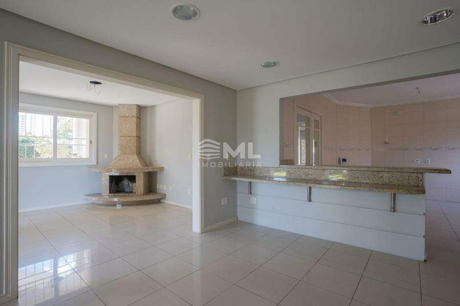 A área social ainda conta com uma sala de estar com lareira, que proporciona conforto e sofisticação, com acesso direto a uma varanda revitalizada integrada ao jardim dos fundos. Internamente, há acesso à garagem, que oferece, além de vagas cobertas, uma área de serviço funcional, um depósito e um banheiro social estrategicamente posicionado próximo ao espaço gourmet.
