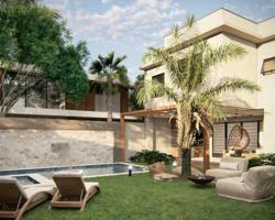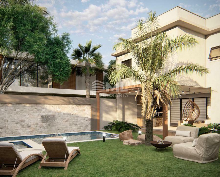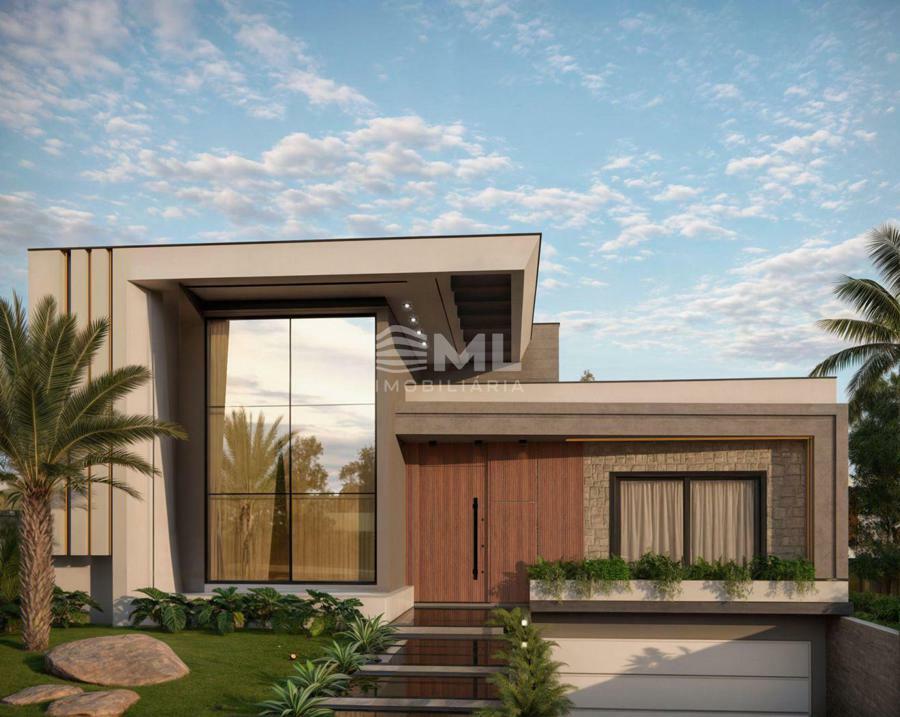 Arquitetura contemporânea em dois pavimentos, com ampla área social integrada (sala, jantar, cozinha e churrasqueira). Conta com 3 suítes (sendo 1 master com claraboia), lavabo, lavanderia e escada plissada. Piscina com deck, aquecimento solar, paisagismo e garagem para 4 veículos. Residência em condomínio fechado, com espera para aquecimento solar e carregadores de carros elétricos.