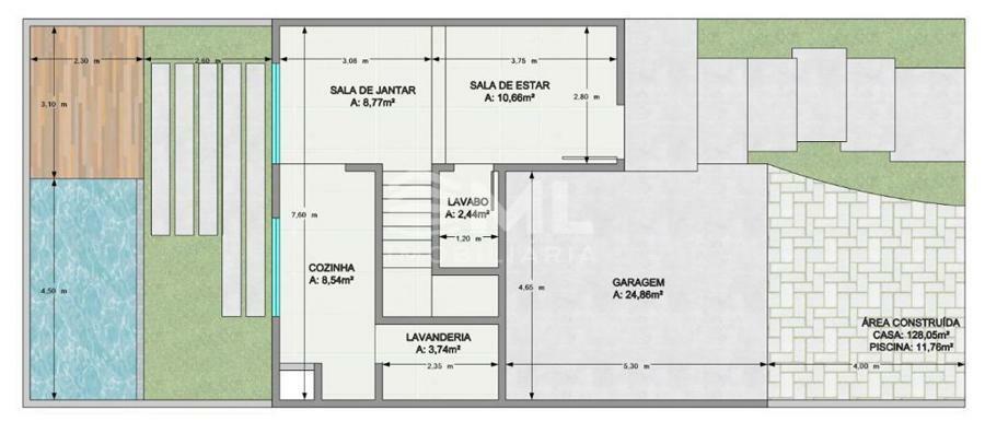 Área Total do Terreno 150,73m² : 7,90m de largura X 19,08m de comprimento.